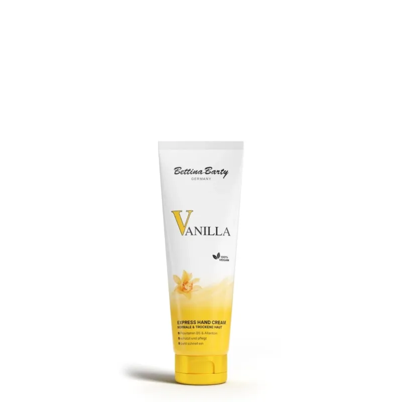 Krema za ruke Vanila Ekspres neguje ruke intenzivnom negom i toplim, poznatim mirisom vanile. Brzo upijajuća formula hidrira bez ostavljanja masnog ostatka, ostavljajući kožu baršunasto mekom. Provitamin B5 i alantoin podržavaju regeneraciju kože, umiruju i štite od isušivanja. Dragocena hranljiva ulja obezbeđuju gipke ruke – idealna za svakodnevnu upotrebu, čak i u pokretu. Senzualni miris vanile suptilno obavija kožu, pružajući trenutak utešne nege u vašoj svakodnevnoj rutini. Kompatibilnost sa kožom je dermatološki potvrđena.